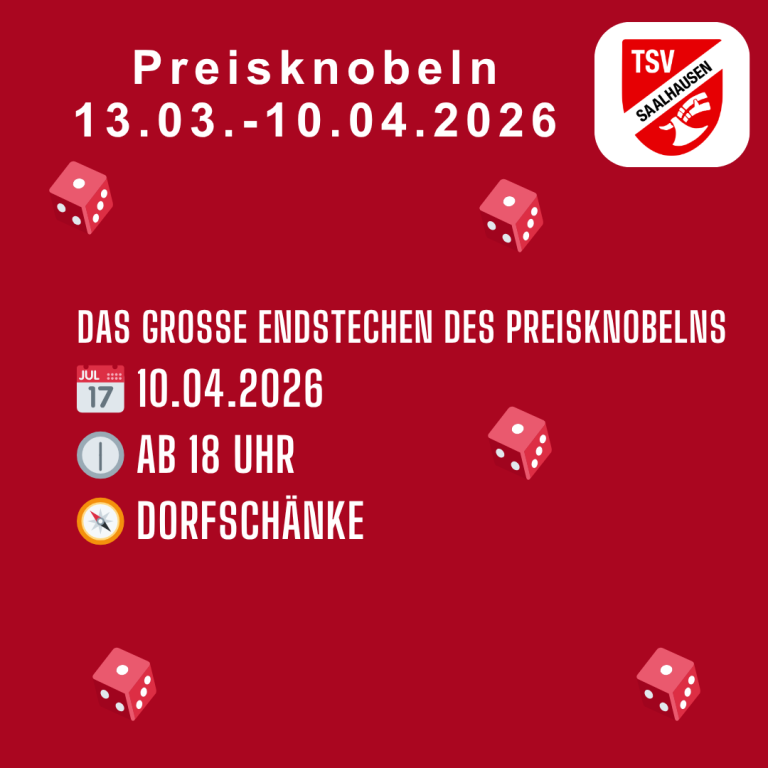 Ostern steht vor der Tür und damit startet auch unser alljähriges Preisknobeln in eine neue Runde. Ab heute fliegen in den Gaststätten "Haus Rameil" und der "Dorfschänke" wieder die Würfel. An den folgenden Wochenende wird um tolle Preise geknobelt, bevor es am 10. April beim Endstechen um die Hauptpreise geht. Am ersten Wochenende geht es um eine Präsentationsjacke von Adidas.