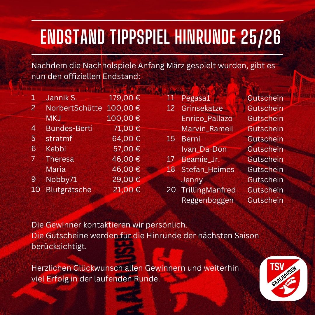 Endstand Tippspiel Hinrunde